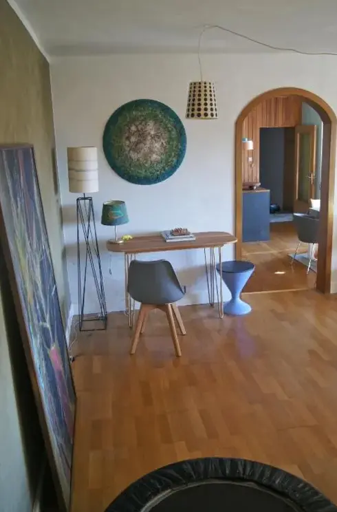 Die Gastgeberin hat uns erwartet und war außerdem sehr hilfsbereit sowie stets ansprechbar. Die Wohnung ist sehr groß und in allen Zimmern hängen Kunstwerke der Eigentümerin.
